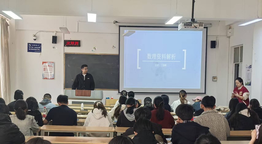上午,潘老师的《公务面试能力提升与实训》课程以公务员招录面试的核心需求为导向,聚焦岗位适配能力与应试技巧的提升,围绕公务员面试流程、核心考察素质及面试三大题型展开系统教学。课堂上,潘老师针对历年经典考题进行细致剖析,通过思路梳理、答题示范与要点总结,帮助学生掌握科学的答题方法与应试策略。下午,丁老师的《数理资料解析》课程带领同学们整体了解公务员考试中的题型设置及本课程的安排,并结合具体例题讲授了统计术语与常用计算方法。课堂上,教师讲解得细致入微,同学们听得专注投入。