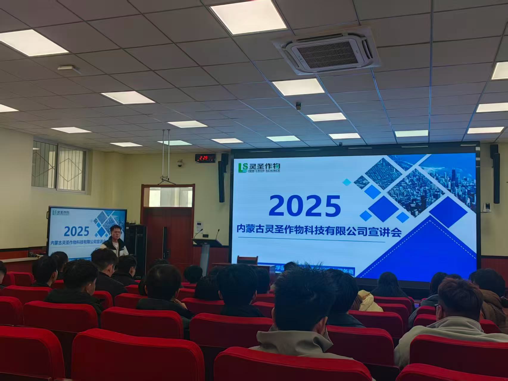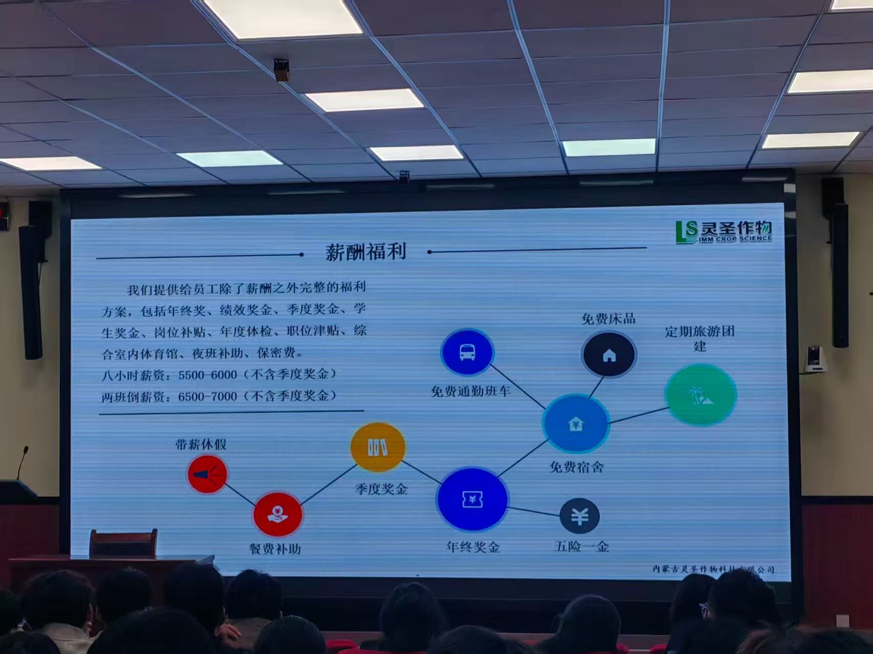 会上,内蒙古灵圣作物科技有限公司招聘经理郭峰玮围绕企业发展历程、核心业务布局、人才培养理念展开介绍,重点解读了本次招聘的岗位需求、任职要求,以及薪资结构、福利保障等学生关心的内容,为毕业生提供了全面的企业岗位信息。